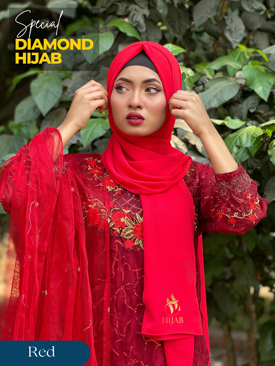 সফ্ট এবং প্রিমিয়াম মালয়েশিয়ান ডায়মন্ড জর্জেট কাপড় এর প্রিন্ট রেডি হিজাব।