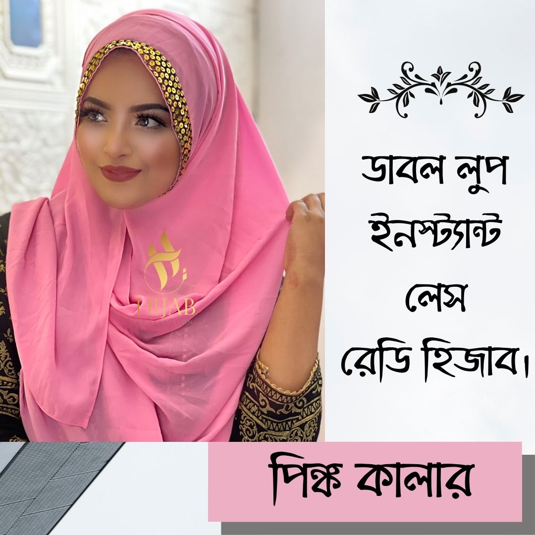 ডায়মন্ড জর্জেট ডাবল লুপ ইনস্ট্যান্ট প্রিন্ট রেডি হিজাব - PRHD1- Baby Pink Color