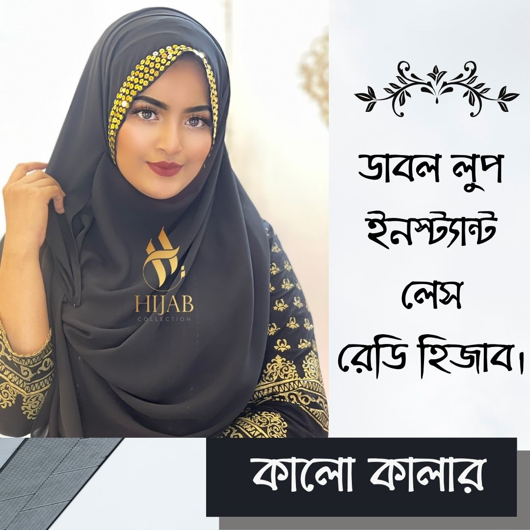 লার্জ রেডি হিজাব + ১ টি ইনার ক্যাপ ও ১ টি হিজাব পিন (গিফট) সব একসাথে -KC- Black Color
